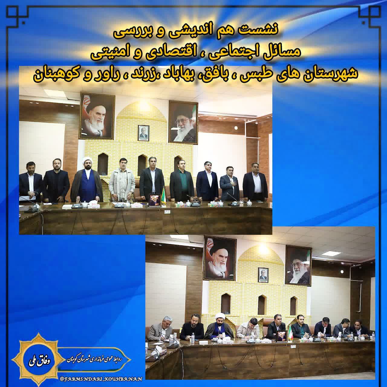 نشست هم اندیشی و بررسی مسائل اجتماعی ، اقتصادی و امنیتی شهرستان های بهاباد، طبس ، بافق، زرند ، راور ، کوهبنان